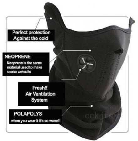 Неопреновая маска windstopper с флисовой вставкой. Система вентиляции, размеры универсальные, идеально защищает от ветра при катании на мотоцикле, сноуборде, лыжах. Цвет только черный. Небольшое видео: