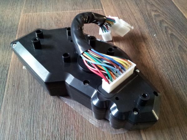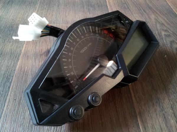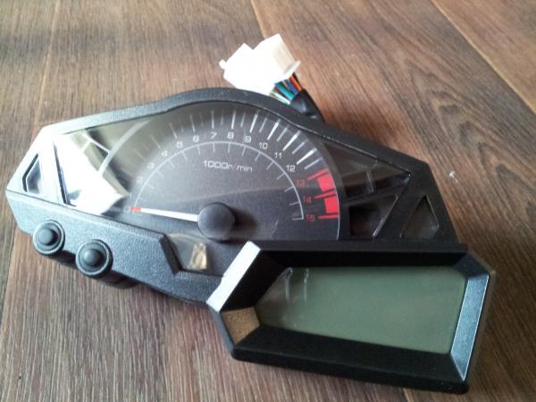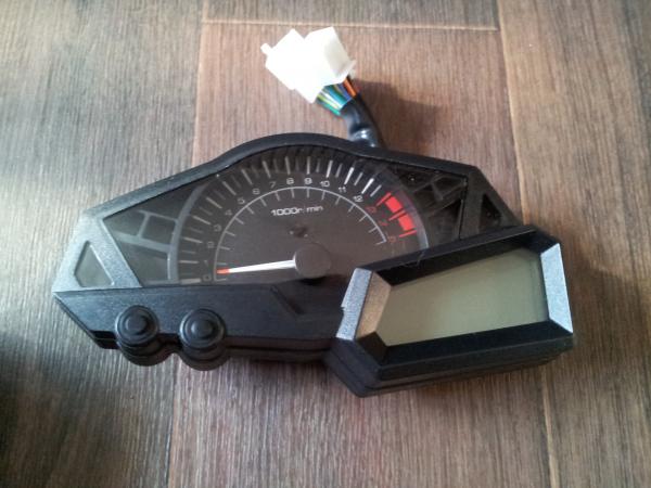 Панель приборов предназначена для установки на мототехнику с шестиступенчатой коробкой. Улучшенная эргономика и информативность (читаемость) при дневном освещении. Устанавливается на мотоциклы и мопеды с коробкой передач. На дисплее имеет индикацию включения шести передач, показания тахометра, скорости и одометра. Для показаний тахометра имеется отдельный большой очень информативный стрелочный индикатор. Имеет отдельные индикации нейтральной передач, левого и правого поворотов, дальнего света, уровня топлива, индикатор температуры, давления масла. Имеет режим переключения цветов подсветки дисплея. Всего семь вариантов: голубой, «электрик», зеленый, красный, бирюзовый, фиолетовый, салатовый. Все цвета не раздражают зрение. Панель приборов проста в эксплуатации.