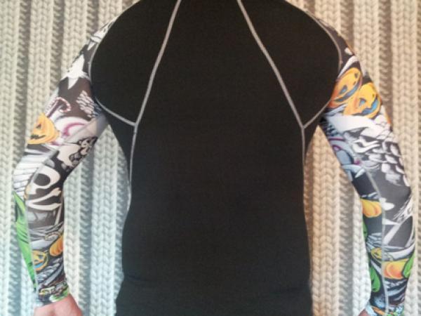 Термокофта "Halloween"с имитацией тату на рукавах.Изготовлена из очень тонкого синтетического материала с нанесенными специальными красками рисунками на рукавах, полностью имитирующими тату.Футболка не ограничена в сроках носки, не алергена и выдерживает многократные машинные стирки, не линяет.Размеры L/XL. |