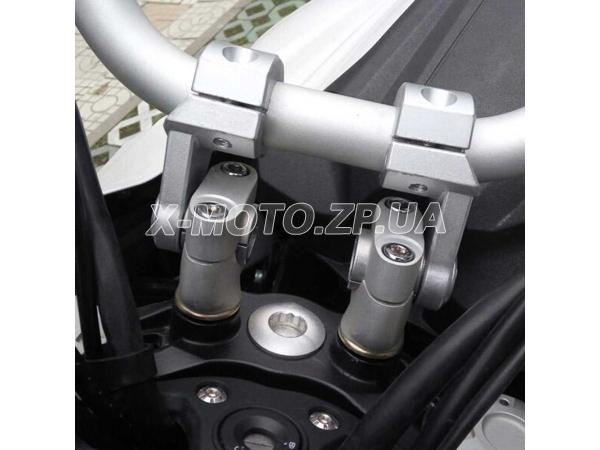 Проставки с D22 на D28 позволяют подстроить высоту руля под физические характеристики водителя. При использовании проставок руля улучшается посадка водителя и положение рук, в результате чего увеличивается продолжительность комфортной езды на мотоцикле и удобство руления. Данная конструкция проставок руля позволяет не только поднять руль, но и менять его положение по горизонтали относительно водителя.