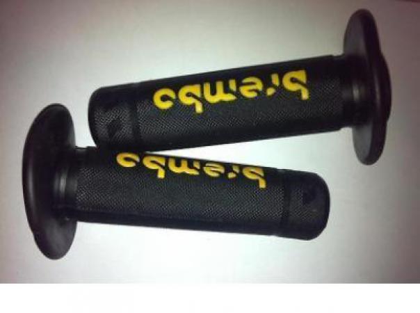 Ручки Brembo, под руль диаметром 22 мм Очен мягкие ручки, комфортные в использовании, но быстро изнашиваются, потому как очень мягкая резина.Цвет синий и желтый.