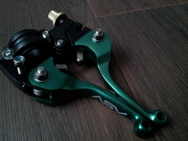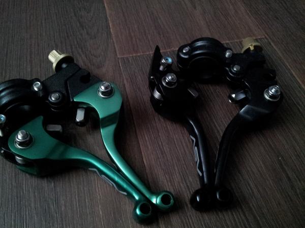 Левая ручка ( под сцепление ) имеет крепление под тросс, правая ( под тормоз ) - гидравлика.