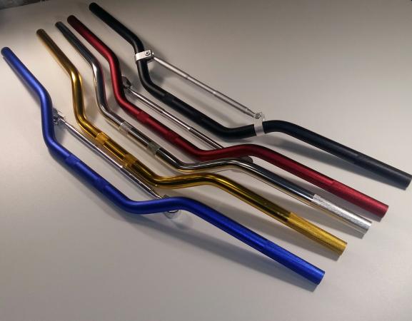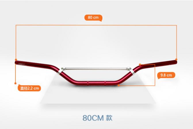 Руль алюминиевый диаметр 22 мм, с перемычкой без подушки. Длина 800 мм Общая высота 120 мм Толщина стенки трубы 3,5 мм. |