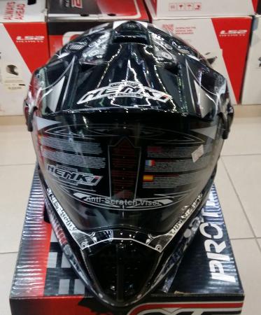 Сертифицированный шлем мотард NENKI. Оболочка шлема выполнена из термопластика. Подкладка съемная из мягкой ткани имеет возможность стирки. Визор стойкий к царапинам. Застежка MicroMetric. Отличная вентиляция. Сертификация ECE R 22-05 Вес шлема 1600 г. |