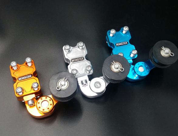 Автоматический натяжитель цепи Monster Energy. Является дополнительным натяжителем цепи при ее провисании. Предотврашает спадание цепи при ее критической вытяжке и провисании.Также дополнительно является успокоителем: цепь не прыгает и не бъет по маятнику. Универсальный, для всех типов цепей.