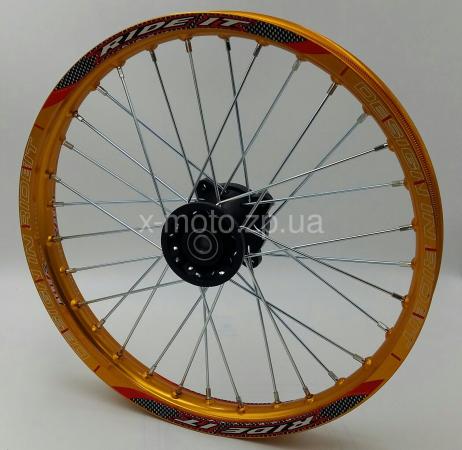 Диск передний, легкосплавный 1,6*-17 "RIDE IT" золотистый. Материал алюминий, покрытие анод. Комплектация: обод, спицы, ступица. Ось 15 мм. Подшипник 6202 RS. Так же можно купить |