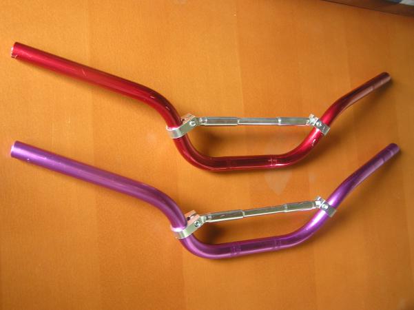 Рули тюнинговые на Yamaha YBR 125. Материал алюминий, покрытие анод. Стенка трубы 5 мм. Перемычка под подушку.