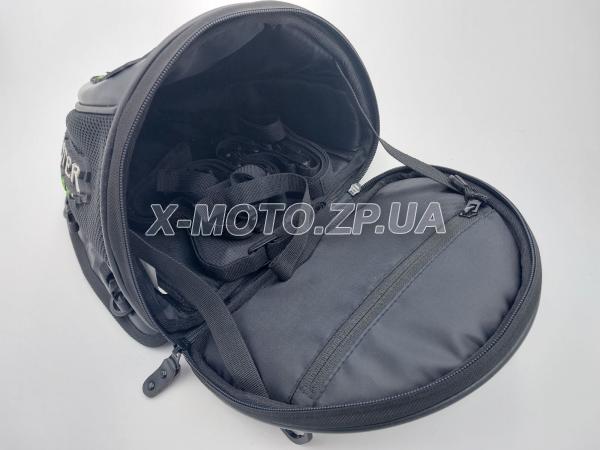 Сумка на на хвост Monster, крепление на ремнях и карабинах ( в комплекте ), удобная ручка для переноски, одно основное отделение, дополнительный карман на молнии внутри сумки для бумаг и документов. Внутрь помещается дождевик и много мелочей. Не мешает при езде. Добавляет упор для поясницы, что будет не лишним в дальних поездках. Материал кожзам и текстиль. Размеры: 30х25х20см. 0957431741 (Viber Telegram) 0971158881 |