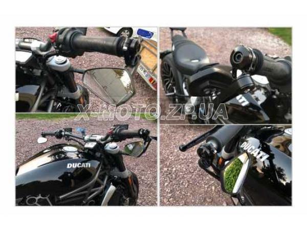 Мото зеркала в торец руля (Street, Cafe Racer, Bobber) стреловидные.