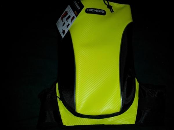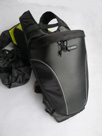 Качественный моторюкзак Cross-Border в виде аэродинамического горба изготовлен из прочной синтетической ткани Oxford (прочная ткань из синтетических волокон полиэстера или нейлона, гладкая и блестящая, устойчива к истиранию, к разрывным нагрузкам, морозу). Может изменять объем с помощью дополнительной молнии, имеет в наличии один основной карман и чехол от дождя, вставки под карбон на основной части рюкзака, светоотражающие полосы. Цвет желтый. Среднего размера. Скрытая молния от проникновения влаги. Перфорированные вставки на внутренней стороне моторюкзака для отвода тепла.