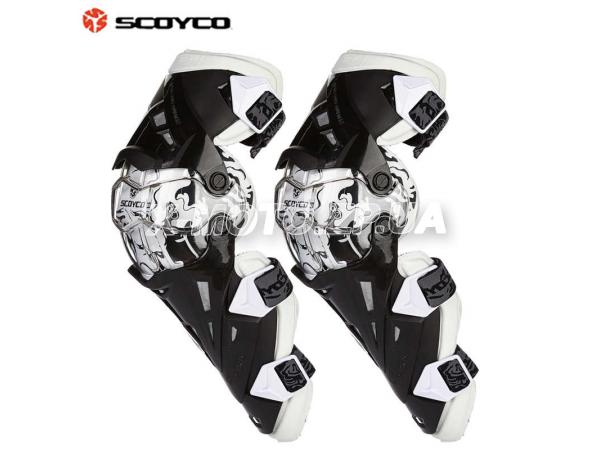 Мотонаколенники Scoyco K12 шарнирные чёрно-белые