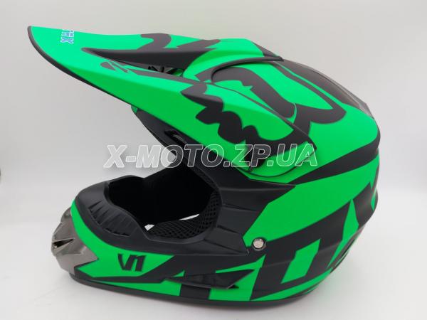 Шлем кроссовый FOX Matte-black‑green (чёрно-зелёный матовый)