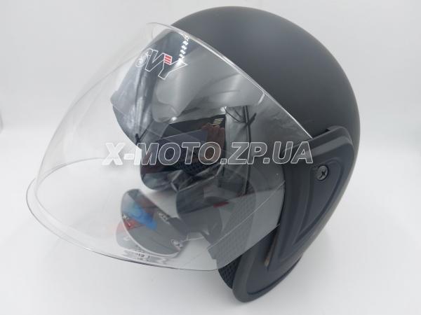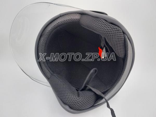 Откидной визор (съемный). Стекло прозрачное. внутри, достаточно качественная обивка Размер универсальный р.M-L (57-59см)