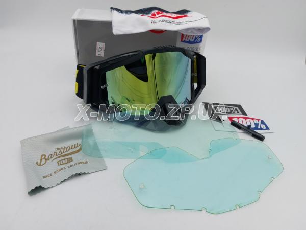 Очки кроссовые 100 Percent с защитой носа чёрно-жёлтые