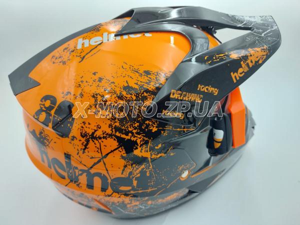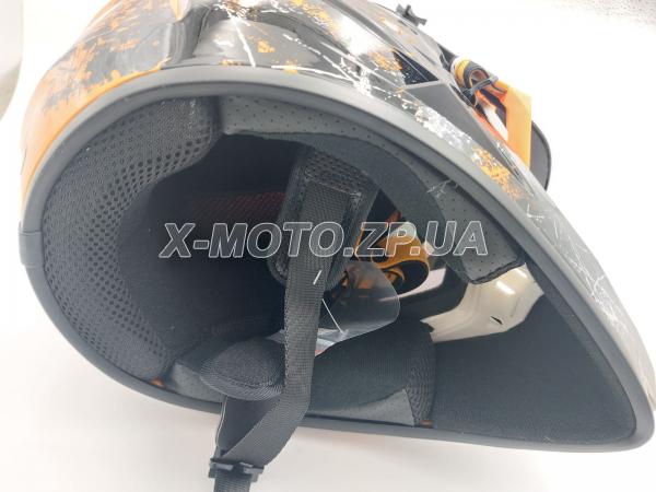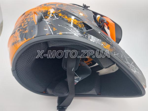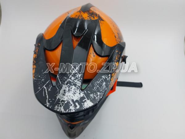 Шлем кроссовый OFF ROAD в комплекте с очками черно/оранжевый глянец