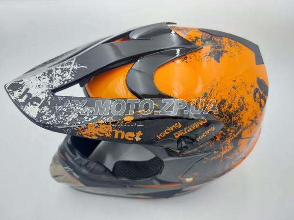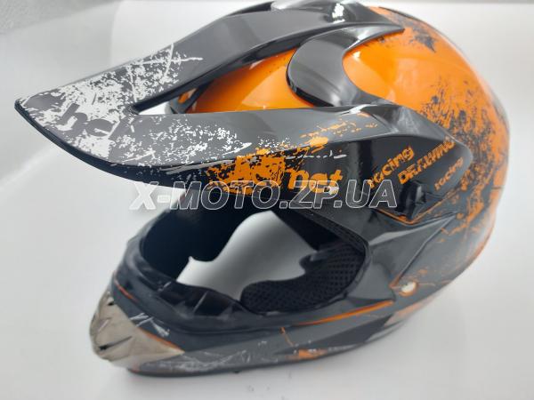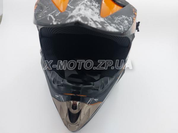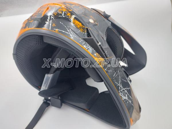 Шлем кроссовый OFF ROAD под очки черно/оранжевый глянец