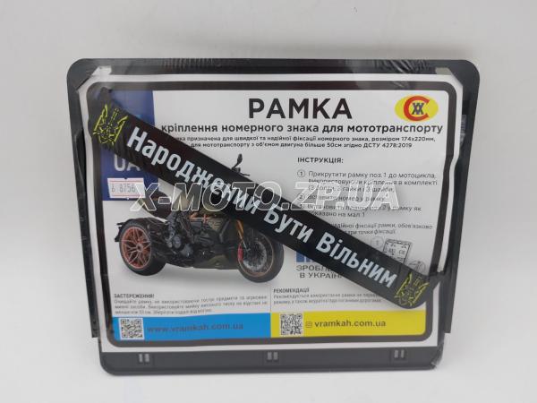 \ Рамка для номера пластик на мотоцикл "Народжений Бути Вільним" черная, надпись белая