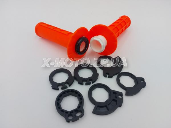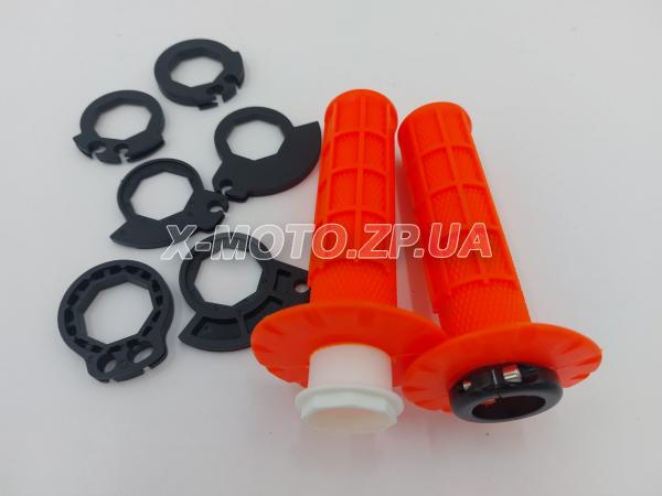 Ручки руля грипсы со стержнем газа, секторами и фиксатором (п+л) Оранжевые