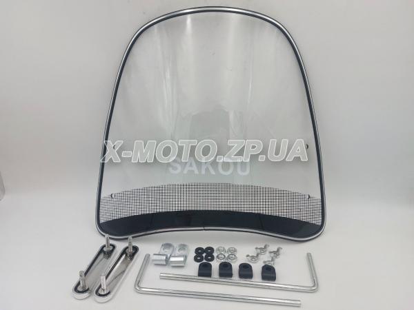 Ветровое стекло (ветровик) универсальное SAKOU на мотоцикл с резиновым ободком.