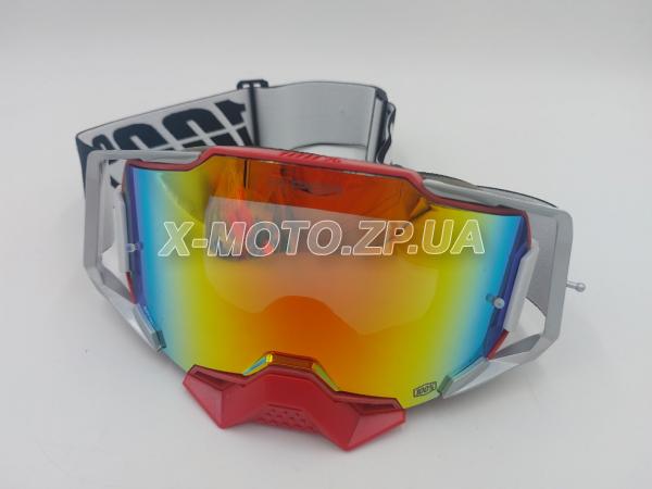 Кроссовые очки 100% Hiper зеркальные с защитой носа Красно/серо/ белыедля вело, мотокросса, сноуборда, лыж, походов в горы.