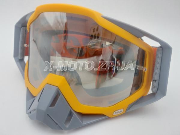 Очки кроссовые 100 Percent с защитой носа серо/ оранжевые Тонированые линзы. Очки отлично подходят под любой кроссовый шлем; Универсальный размер; Яркая качественная раскраска. Комплектация на фото.
