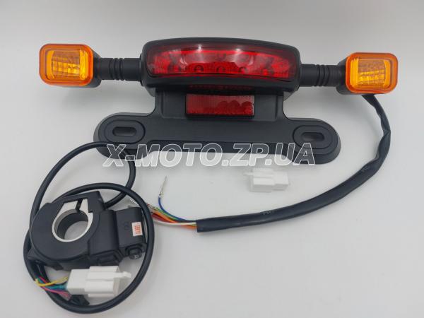 \ Тумблер+стоп сигнал с поворотами 12V и креплением номера для мотоцикла, подбайка, электро велосипед.