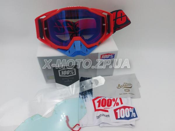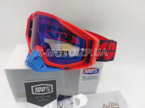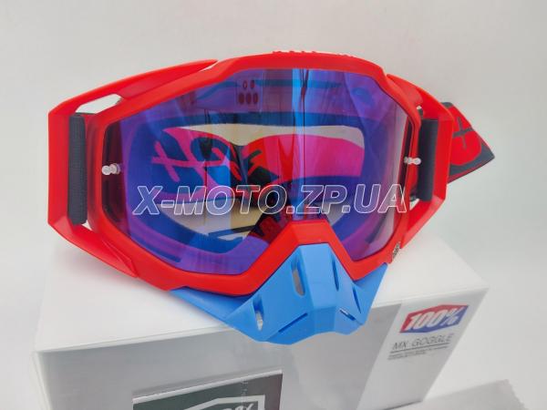 Очки (маска) кроссовые-эндуро 100% с зеркальной линзой, красно-синие
