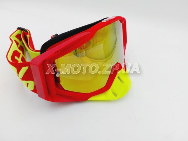 Кроссовые очки 100 Percent 100% зеркальные с защитой носа «КРАСНЫЕ» с желтыми линзами