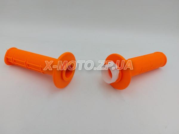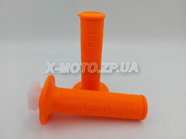 \ Грипсы со стержнем газа (ручки руля) DOMINO мягкие и липкие на мотоцикл Оранжевые