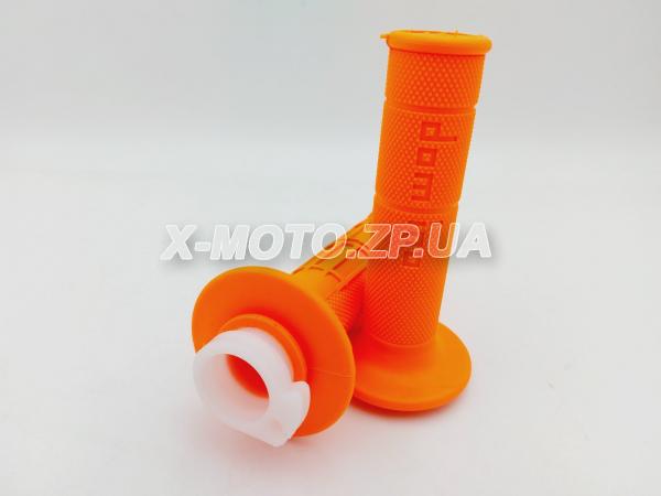 Грипсы со стержнем газа (ручки руля) DOMINO мягкие и липкие на мотоцикл Оранжевые