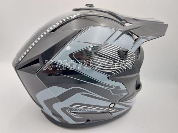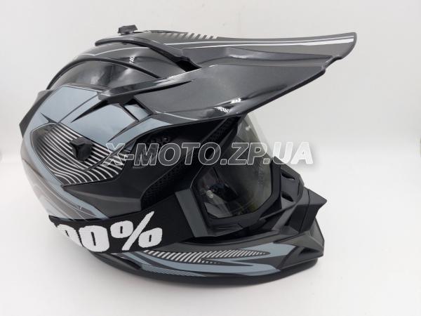 \ Шлем кроссовый ORZ с очками черно-серый для кроссового мотоцикла и питбайка