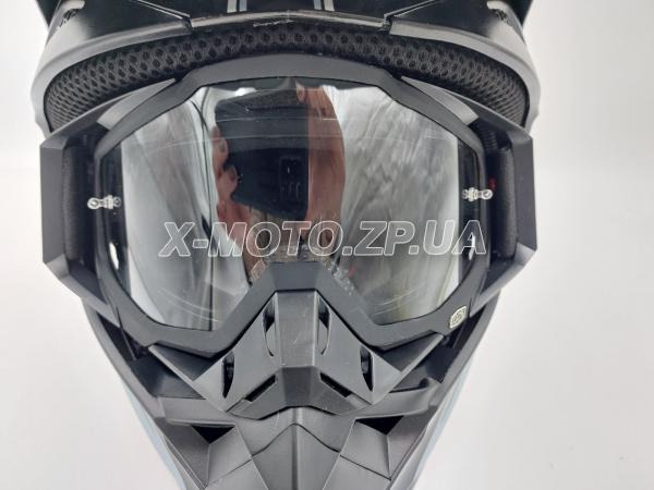 Шлем кроссовый ORZ с очками черно-серый для кроссового мотоцикла и питбайка Знімна підкладка з м'якої тканини має можливість прання.