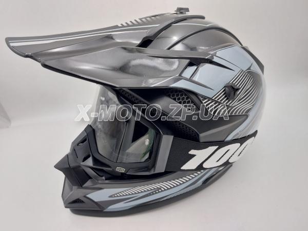 Шлем кроссовый ORZ с очками черно-серый для кроссового мотоцикла и питбайка