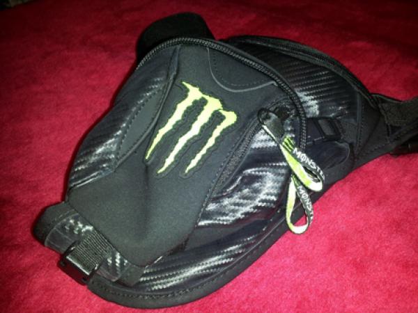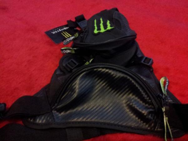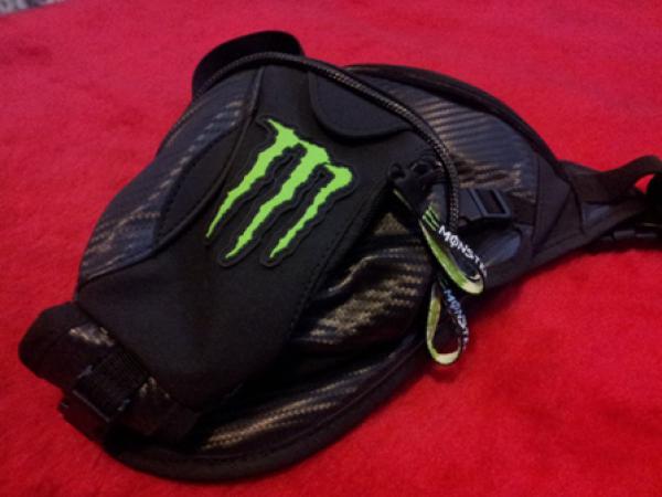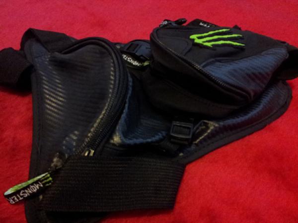 Сумка на бедро Monster, непромокаемая, материал "под карбон", один основной карман, и куча маленьких для мелочевки. Отстегивающаяся дополнительная сумка. |