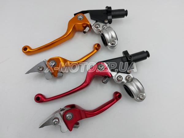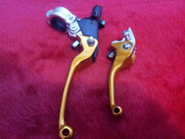 Рычаги тормоза и сцепления СNС, алюминиевые, покрытие анод. Цвет: золото, красный. Левый под сцепление стандартного размера, правый под гидравлику укороченный. Складываются при падении. Высокое качество отделки и покрытия. 0957431741 (Viber Telegram) 0971158881. |