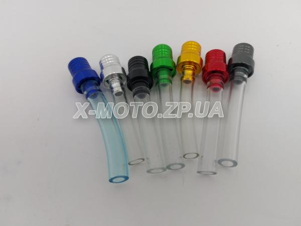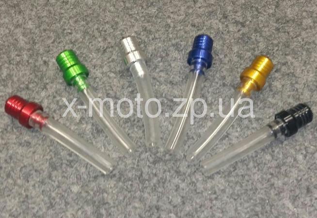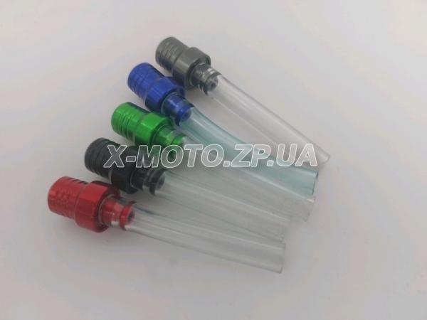 Деталь, которая частенько теряется называется вентиляционный клапан на крышку бензобака питбайка. Предотвращает утечку топлива из бака во время падения или наклона мотоцикла. Имеет длину трубки 5 см и ее внутренний диаметр стандартный - 5 мм. Поэтому он подойдет на все питбайки марок Viper, Kayo, Geon, YCF, и другие мотоциклы. |