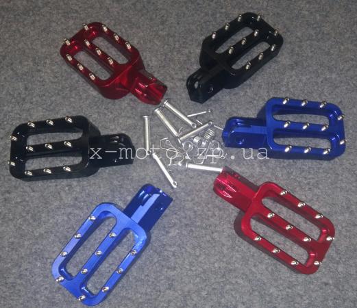 Подножки кроссовые цветные без надписи, материал алюминий, шипы.