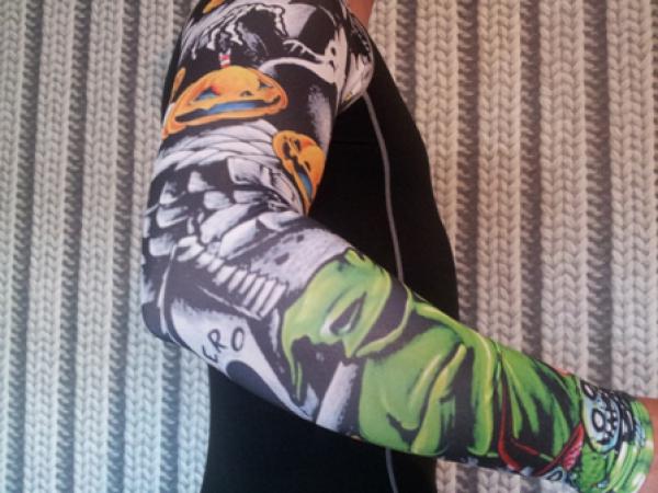 Термокофта "Halloween"с имитацией тату на рукавах.Изготовлена из очень тонкого синтетического материала с нанесенными специальными красками рисунками на рукавах, полностью имитирующими тату.Футболка не ограничена в сроках носки, не алергена и выдерживает многократные машинные стирки, не линяет.Размеры L/XL. |