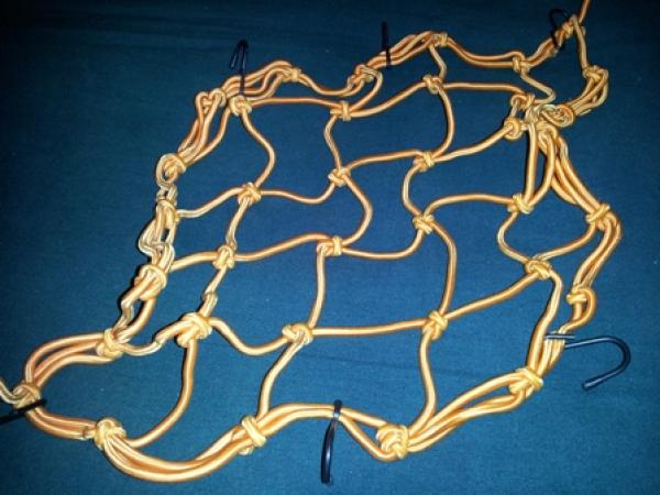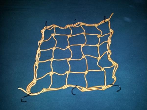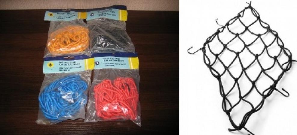 Сетка"паук" для крепления багажа к байку, размеры сетки примерно 40см*40см, 25 ячеек; имеет 6 крючков для крепления с защитными колпачками, отлично тянется. |