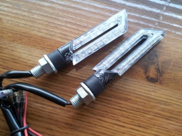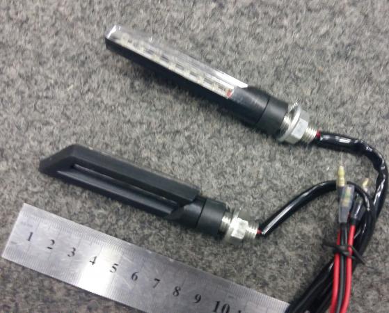 Повороты светодиодные, габаритная длина 100 мм , ширина 20 мм.Универсальные, подходят к любому мотоциклу, цена за пару.Цвета: черный и карбон.