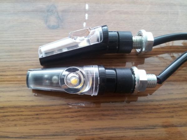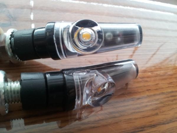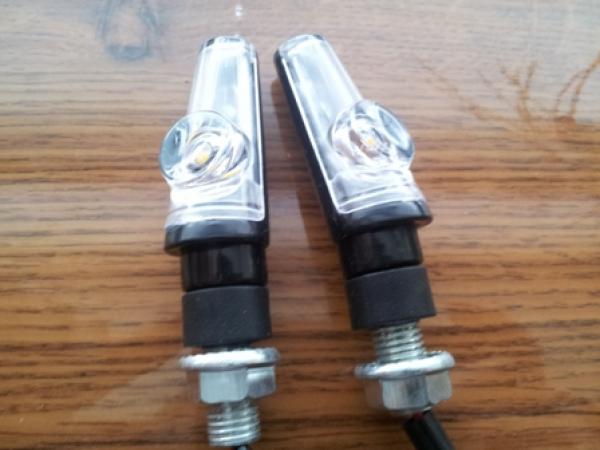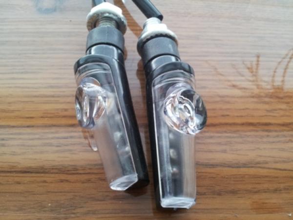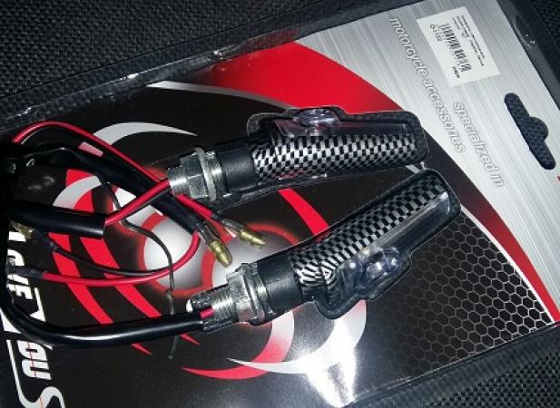 Повороты светодиодные, габаритная длина 80 мм, ширина 22 мм. Диаметр лнзы 14 мм. Универсальные, подходят к любому мотоциклу, цена за пару.Цвета: черный и карбон. |