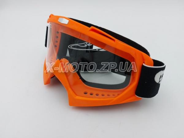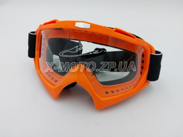 Очки (маска) для мотокросса Vega оранжевые c прозрачным стеклом