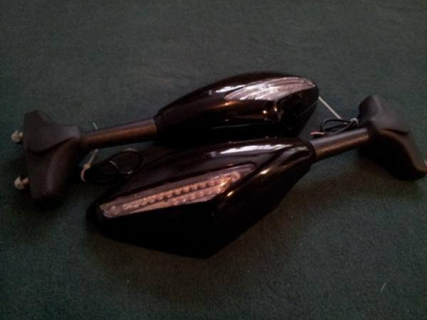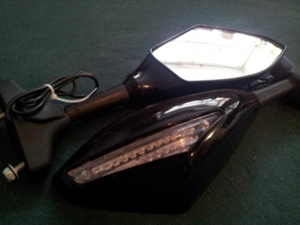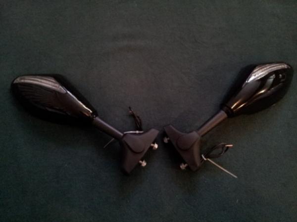 Зеркала с указателями поворотов, универсальные, для всез типов мотоциклов с передним обтекателем.Посадочный размер регулируеться по ширине от 30 до 68 мм. |